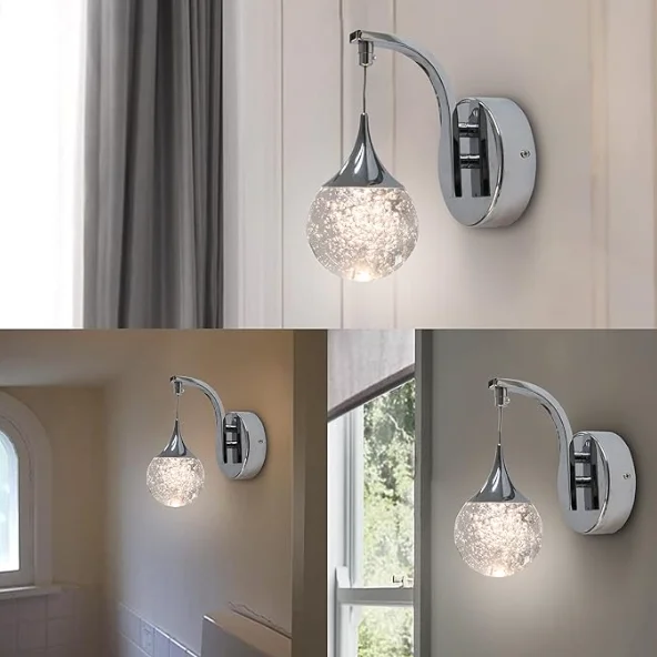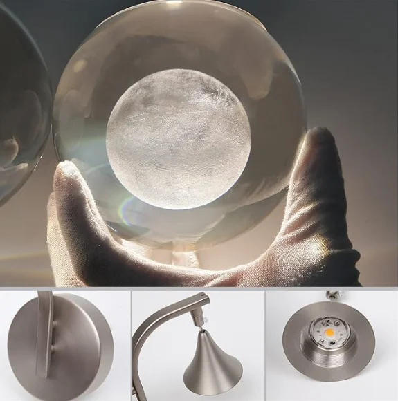 JACKSUN Modern Crystal Moon Wall Lamp, Globe Led Wall Light for Bedroom Living Room Hallway 3000k 6500K